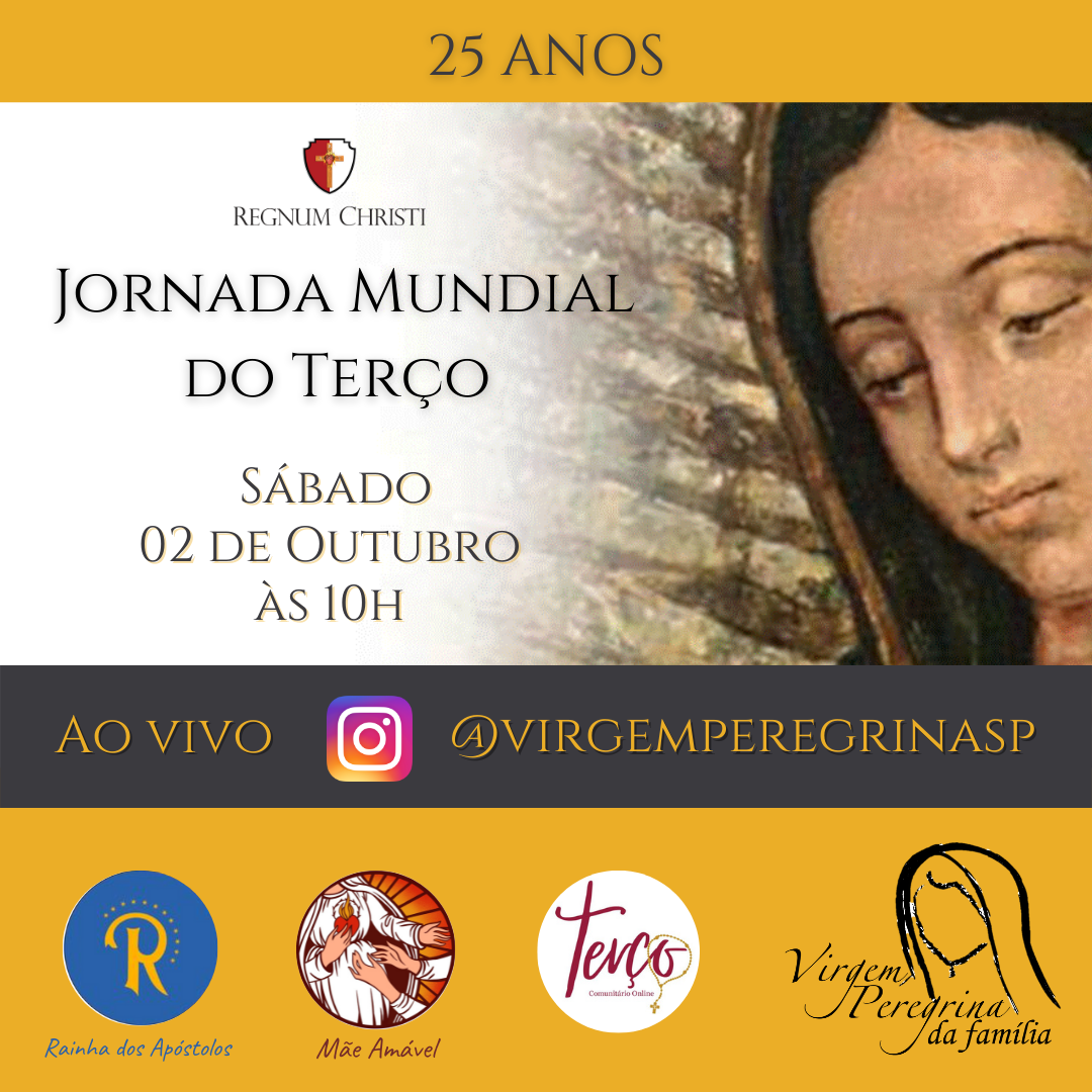 Em comemoração aos 25 anos da Jornada Mundial do Terço, estaremos de forma especial, rezando com os Apostolados Marianos do Regnum Christi, o Santo Terço online pelo Instagram.